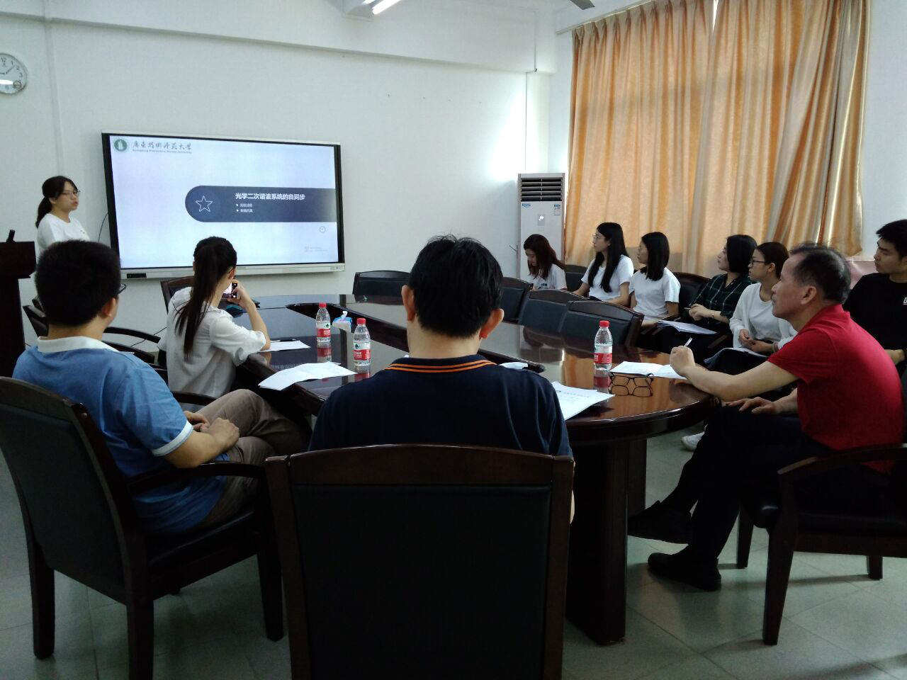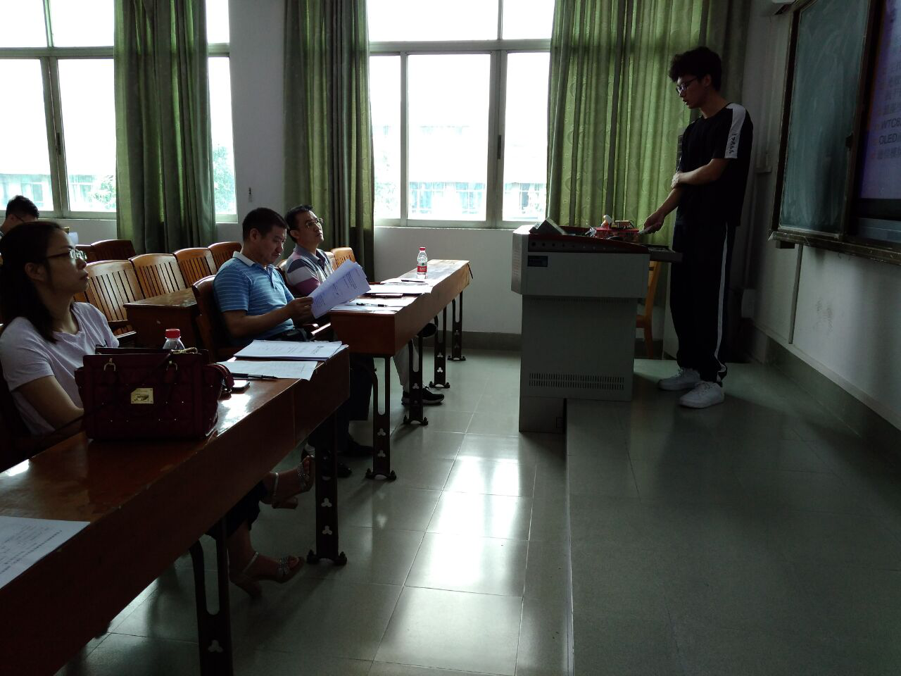 毕业生在答辩前将任务书、开题报告、中期检查、指导记录在网上提交并由指导教师和系主任审核通过,且毕业论文查重也已通过的情况下才进入集中答辩环节。三个答辩分别在一教203、一教604以及光电工程学院会议室1112室进行。答辩有学生陈述、评委提问、现场评分三个环节。每位学生答辩过程15分钟,即答辩人陈述10分钟,答辩小组提问5分钟。答辩过程中, 答辩小组评委结合专业方向针对论文内容提出问题,并给出有益建议。