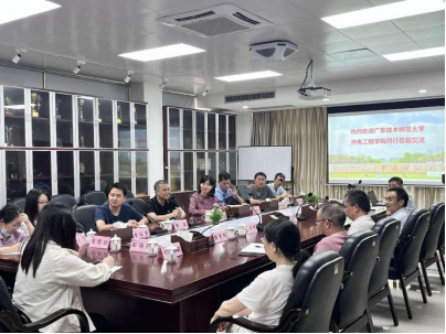 为学习借鉴本科教育教学审核评估工作的成功经验、推进专业建设,4月29日,光电工程学院教学副院长陈湛旭、党委副书记马秋月、光电工程系主任贾涛、实验中心主任李仪芳等一行10人赴华南师范大学物理学院进行学习交流。华南师范大学物理学院教学副院长吴先球、党委副书记王丰、实验教学部部长李丰果、实验管理中心主任曾育锋、中教法教学部部长许桂清等人出席了交流会议。