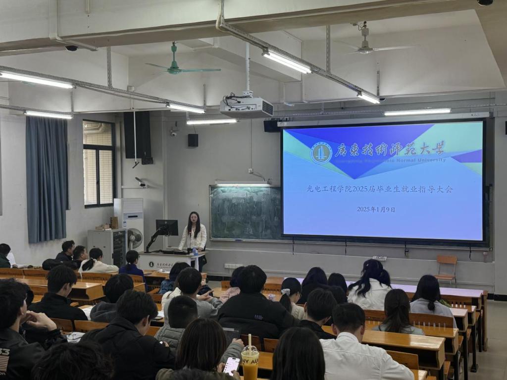 为扎实做好2025届毕业生成长指导和就业服务工作,1月9日下午,我院于白云校区三教101、113分批举行2025届毕业生大会,光电信息科学院工程专业系主任贾涛、物理学(师范)专业系主任陈耿炎、毕业班班主任、辅导员、2025届全体毕业生参加会议。