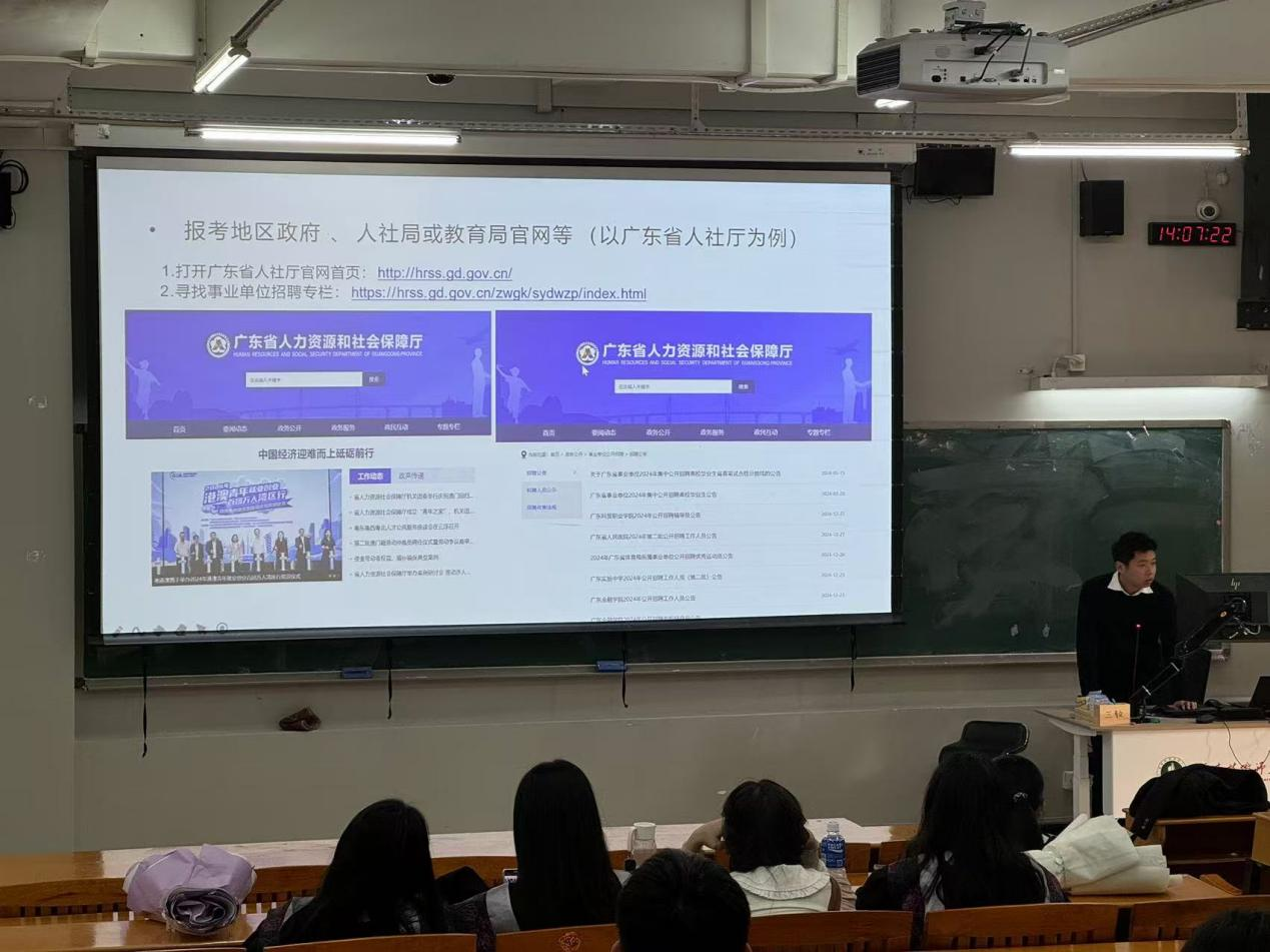本次会议分为就业工作指导和毕业工作指导两个阶段。在第一阶段,毕业班辅导员谭伟坚、郑雨欣为毕业生们梳理了应聘就业的关键环节,详细介绍了毕业去向登记、档案派遣、应征入伍政策、应届生身份界定等相关事宜,对毕业材料的填写进行了重点说明,叮嘱学生做好时间规划,合理分配时间,树立良好心态,把握求职就业的黄金期。